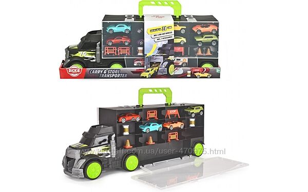 Подробное описание: Іграшковий кейс для машинок Dickie Трейлер перевізник з 4 машинками