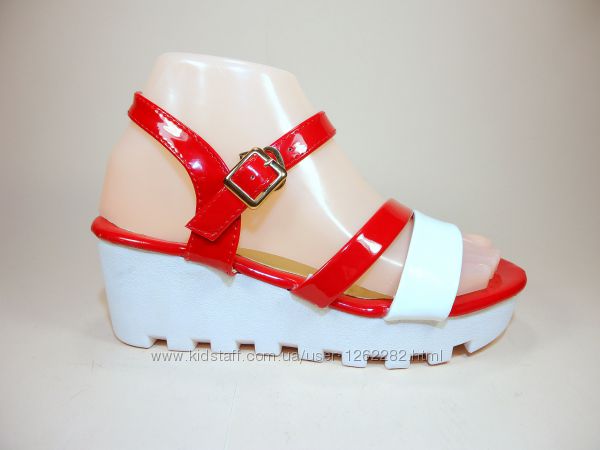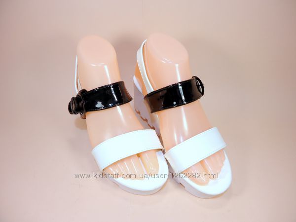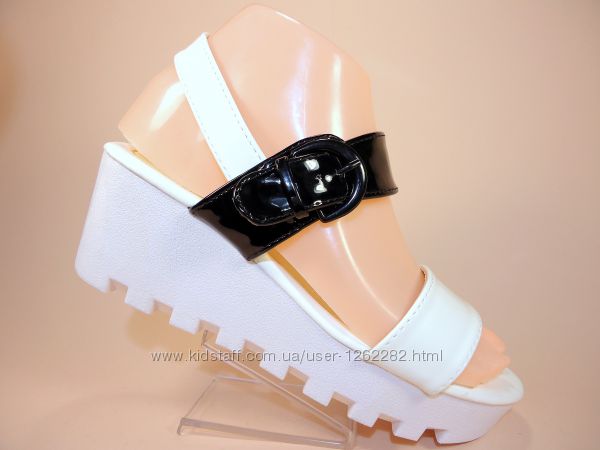 Подробное описание: Женские летние босоножки на белой рифленой танкетке. Размер 36-41
