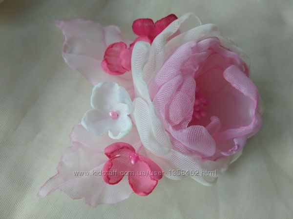 Подробное описание: Заколка нежная, цветы из шифона и атласных лент, резинка