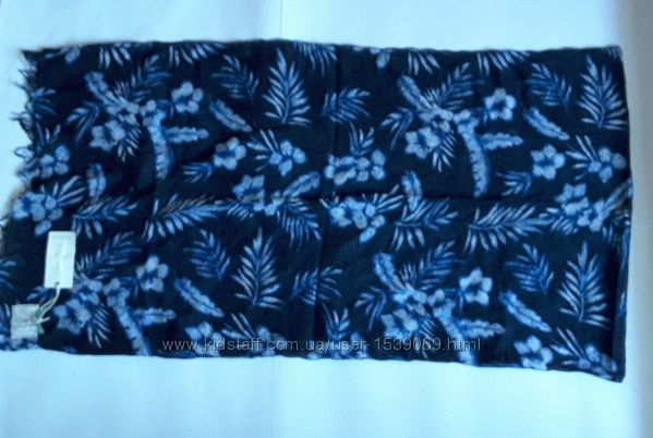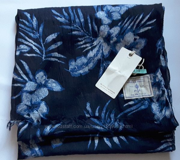 Брендовый шарфик из чистого хлопка с узором цветы и листья на тёмно-синем фоне от дорогостоящего бренда Scotch&Soda подойдет как для людей, предпочитающих стиль casual, так и для тех, кто хочет привнести индивидуальность в свои несколько однообразные деловые комплекты! Хлопок хорошо защищает летом от ультрафиолетовых лучей, что особенно важно на юге, не накапливает электростатического заряда при использовании, хорошо впитывать влагу,хорошо пропускает воздух, не вызывает потливости.Длина - 230см, ширина - 66 см.
