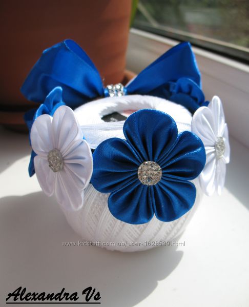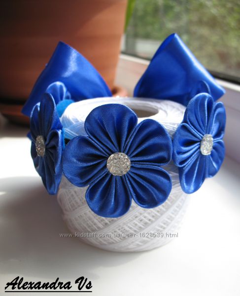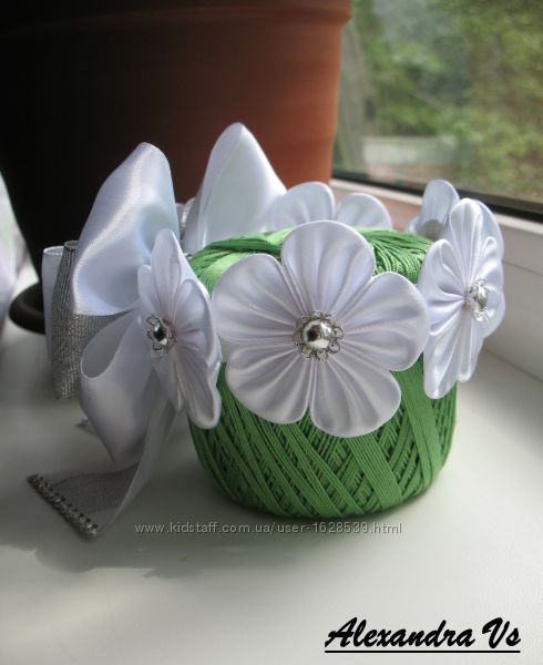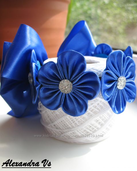 Стильная резинка для волос на пучок/гульку из атласной ленты. Отличное украшение для наряда маленькой девочки или взрослой девушки. Маленькие, аккуратные цветочки, диаметром 6 см, прикреплены подвижно на элластичной основе. В наличии. Цена 135 грн. Возможно выполнение под заказ в любой цветовой гамме.