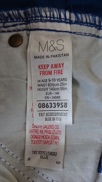 Джинсы детские унисекс для ребёнка 9-10 лет.Плотный деним ярко-синего цвета.