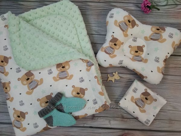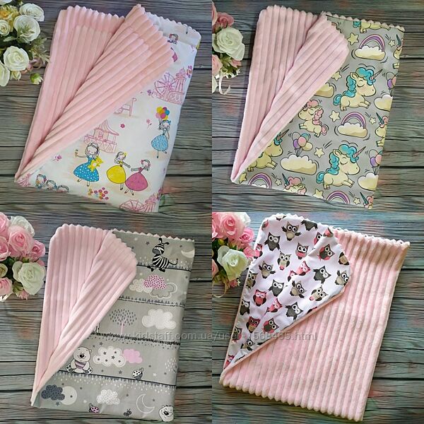 Плед из хлопка и нежного плюша Minky, утеплён синтепоном . Есть летние варианты без утеплителя.Подойдёт на выписку из роддома, а также в кроватку и колясочку.