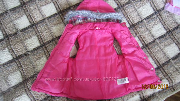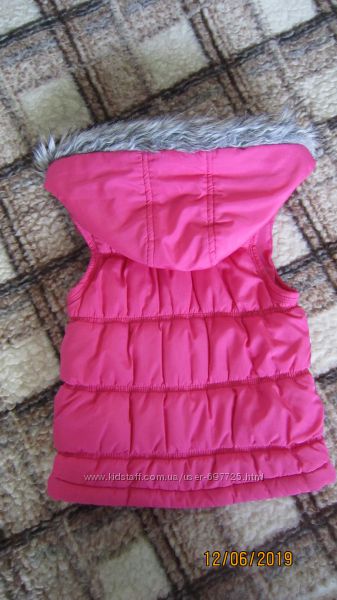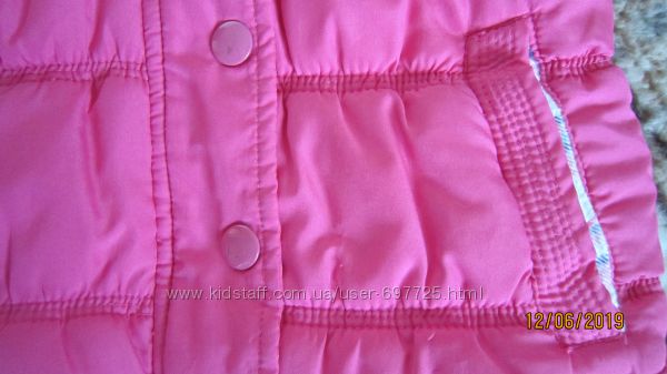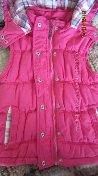 Розовый тёплый жилет Miss e-vie Состояние хорошее, мягкий, удобный, застёгивается на кнопки (немного поцарапаны) и молнию (рабочая) Капюшон с мехом большой, глубокий, контрастная отделка, как и на карманах Размер 6-7 лет, рост примерно 110-122 смЗамеры сделаю