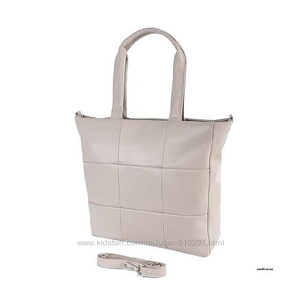 Сумку, з простим кроєм та мінімальним оздобленням, виконано з шкірозамінника високої якості, щоб її використання було максимально тривалим та приємним. Сумочка має дві ручки, які розраховані на комфортне транспортування в руці та на лікті. Також є довгий ремінець для носіння сумочки на плечі, який можна регулювати та за бажанням відстібнути за допомогою карабінів. Задня стінка оснащена врізною кишенею на застібці, а на передній стінці карман на магнітній кнопці. На дні сумки встановлені металеві ніжки. Весь виріб зачиняється на блискавку. Легко вміщає А4 формат.