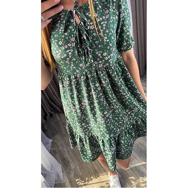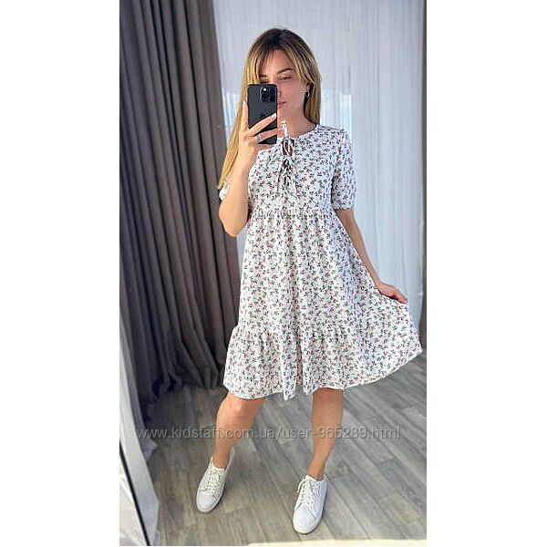 Подробное описание: Жіноче плаття у дрібну квітку з коротким рукавом різні кольори 42-52 розмір