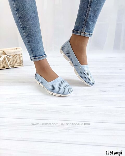 Подробное описание: Летние женские кожаные мокасины голубого и салатового цаета