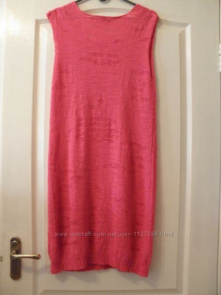 Цвет лучше всего передан на фото 4 ( с вешалкой). В реальности чуть ярче. Указан размер S, но реально на наш размер 48-50 - очень хорошо тянется. Новое. Этикетку срезала, но так и не носила. Сделано в Украине. Из тонких итальянских ниток. Приятное к телу. Нежаркое за счет состава пряжи и "мягкой" рыхлой вязки. К платью прилагается тонкий вязаный черный чехол на бретельках. Форма чехла - трапеция. Платье очень хорошо садится по фигуре, мягко облегает, не висит.