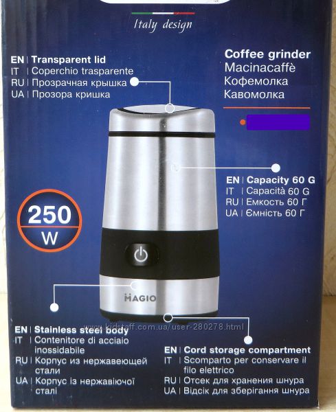 Подробное описание: Кофемолка. Металлическая. Супер мощная 250 Wt. Качественная и Надёжная.