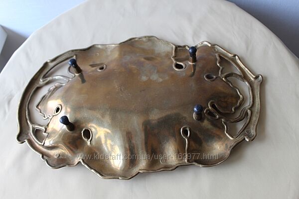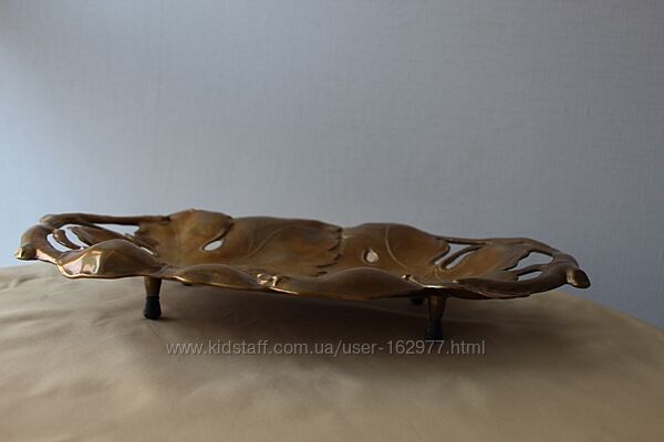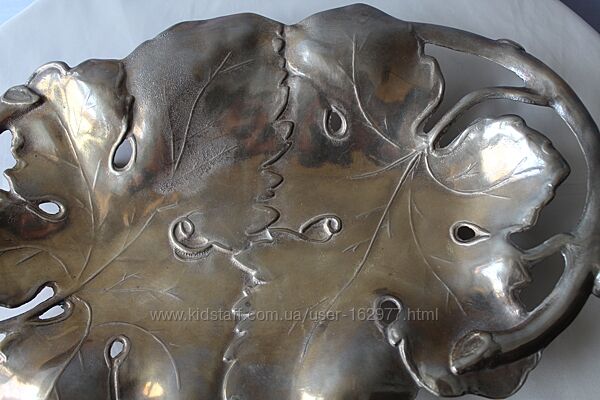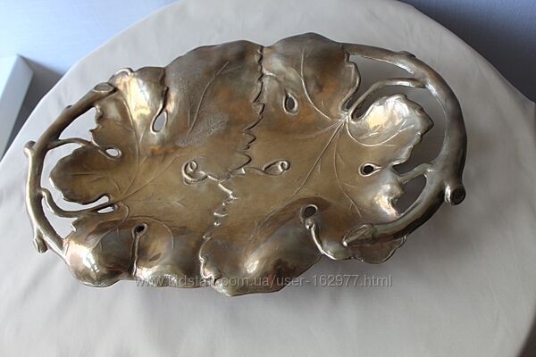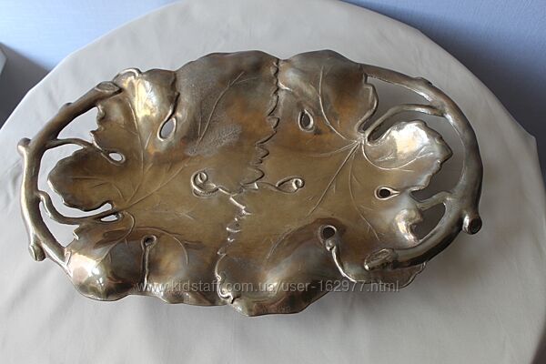 Блюдо, фруктовница, Виноградная лоза, бронза, ГерманияШикарная старинная бронзовая фруктовница с красивым рельефом в виде виноградных листьев и лозы.