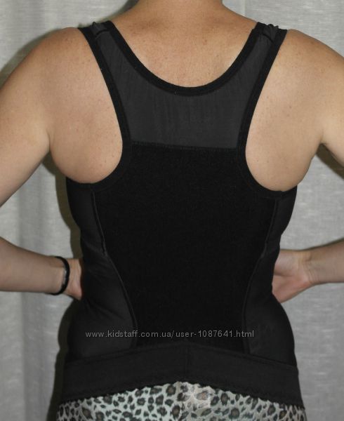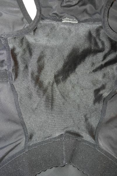 На спине упругая эластичная ткань как бы с атласным покрытием дает дополнительную поддержку спине.