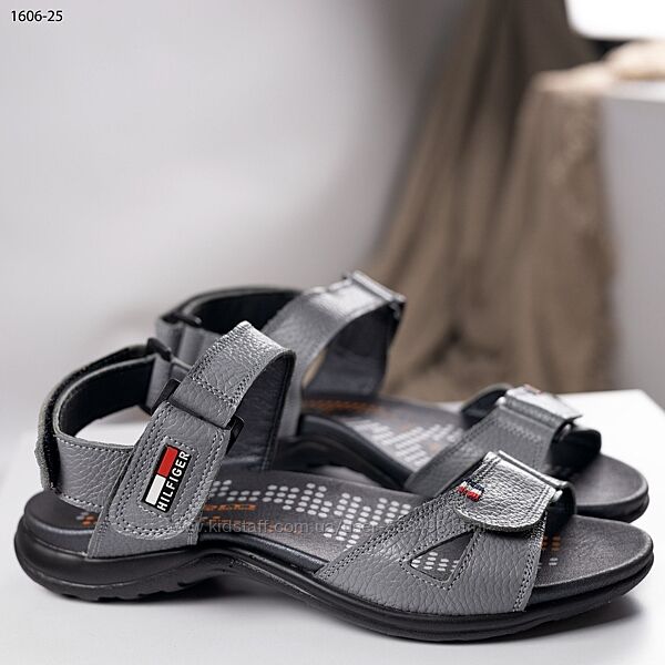 Подробное описание: Сірі жіночі шкіряні босоніжки на липучці