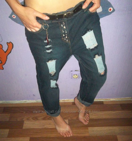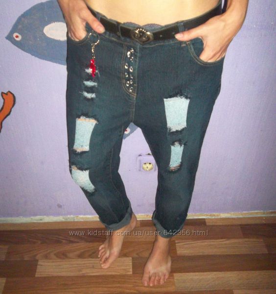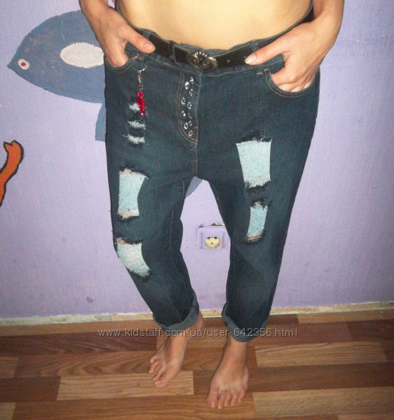 Подробное описание: Фирменные рваные джинсы George с камнями