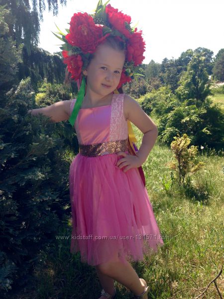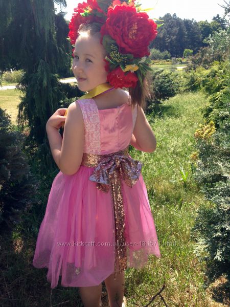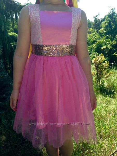 Нарядное платье для девочки с красивым золотоым поясом-бантом