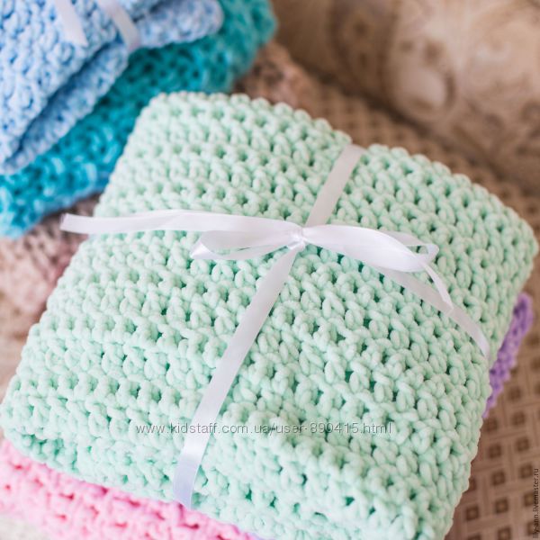 Подробное описание: Вязаный детский плюшевый плед на выписку в коляску, в кроватку ручная работ