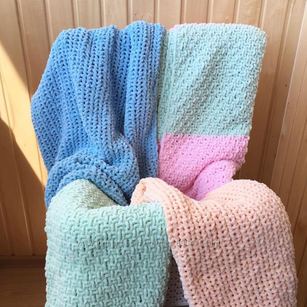 Возможен однотонный вариант или в комбинации с Вашими любимыми цветами. В обьвлении цена за размер до 100*100.Можно размер любой! От маленьких пледиков в колясочку (60х80) до больших двухспальных пледов (2000х2200) Инстаграм: [ссылка удалена]