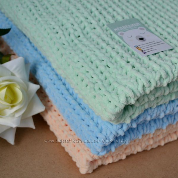 Пледик ручной работы изготовлен из детской гипоаллергенной велюровой пряжи с большой любовью и старанием).