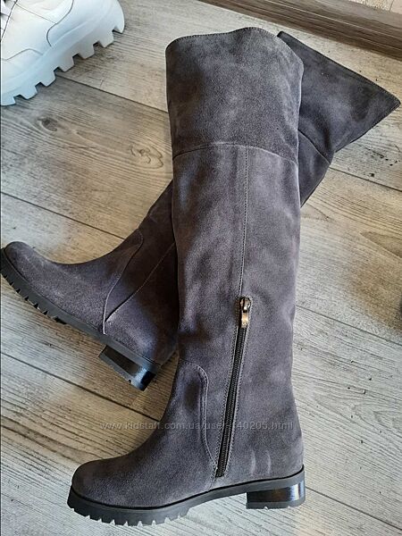 Подробное описание: Распродажа Сапоги ботфорты серые замшевые натуральные