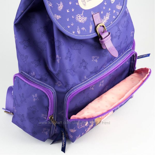 Молодежный рюкзак Kite GP18-965S-2 из полиэстера фиолетового цвета с лицензионным изображением персонажей по мотивам картин известной художницы Евгении Гапчинской. Рюкзак имеет цветную подкладку.