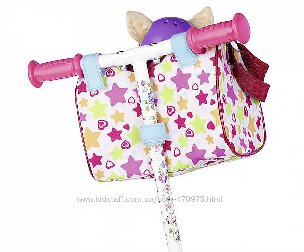 Плюшевому песику достатньо місця в сумці, і він може вирушити в екскурсію з дітьми. Сумка для транспортування – кольорова сумка з чудовим зірковим дизайном має три застібки-липучки на тильній стороні, за допомогою яких можна легко прикріпити до керма велосипеда чи скутера.