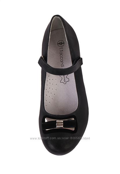 Новые чёрные туфли для девочки, ТМ « T.Taccardi »Материал верха: искусственная кожа, внутри – полностью натуральная кожа, кожаная ортопедическая стелька с супинатором. Впереди декорированы милым бантиком . Туфли застегиваются на регулируемую липучку. Уплотненный задник. Устойчивый каблучок.