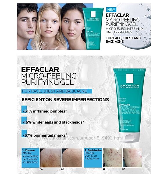La Roche-Posay Effaclar Micro-Peeling Purifying GelКосметическая серия Effaclar от бренда La Roche-Posay предназначена для ухода за проблемной, жирной, склонной к высыпанию кожей, с признаками акне и постакне. Гель-микропилинг для очищения способствует бережному, но эффективному устранению загрязнений, излишек себума и уменьшению количества черных и белых точек. Средство помогает справиться с акне не только на лице, но и на проблемных зонах тела — спине и груди. Благодаря уникальному комплексу 2% салициловой кислоты и липо-гидрокси кислоты гель интенсивно отшелушивает ороговелый слой, не имея в составе скрабирующих частиц. Добиться совершенно гладкой и упругой кожи можно достаточно быстро: с помощью клинических испытаний доказано — после месяца использования -51% воспалений, -16% глубоких и длительных поражений кожи, -57% пигментации.
