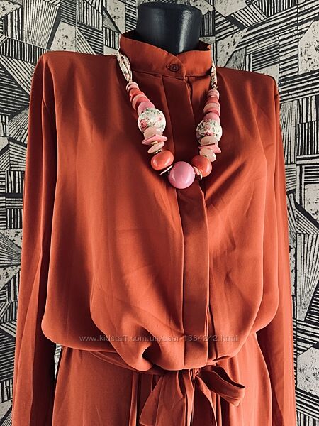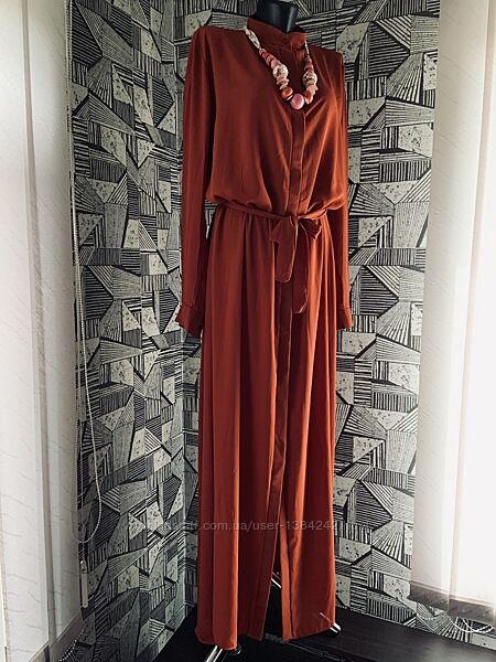 Дизайнерское терракотовое этно платье-рубашка абайя "от кутюр" /AAINA Couture/ (Cоuture "от кутюр" - уникальные модели произведённые в ведущих домах моды, как правило модели "от кутюр" прописаны Парижским синдикатом высокой моды. Выражение "от кутюр" возникло от французского "Couture"- это высший сегмент фешн- индустрии, обладать званием высокой моды могут лишь эксклюзивные модели, сшитые самыми именитыми дизайнерами и модными домами. ) Размер: UK 18 (3XL/4XL) Новое, без бумажной этикетки. Замеры изделия: Длина- 150см. Ширина в плечах- 44см. Пог/Пот/Поб- 62/63/67см. Длина рукава от плеча- 63см. Пройма рукава- 20см.
