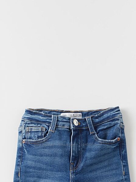 Джинси скіні з потертостями для дівчинки . Застібаються джинси на гудзик. У поясі є утяжки.Брендовий магазин Zara, Іспанія