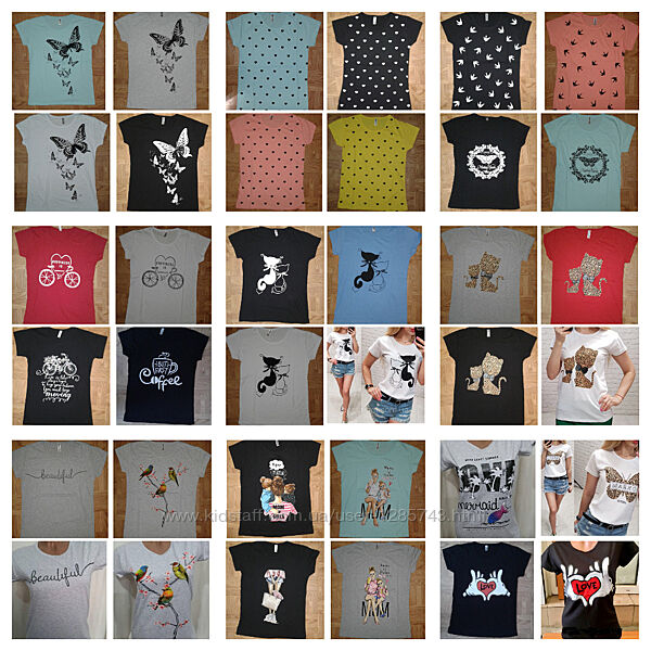 Жіноча футболка в асортименті кольорів і малюнків дуже багато. розмір с м л = 44-46-48 повномірна на 50 буде но обтяне Відмінна якість! пр-во Туреччина