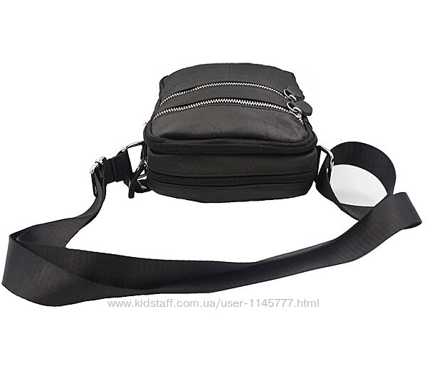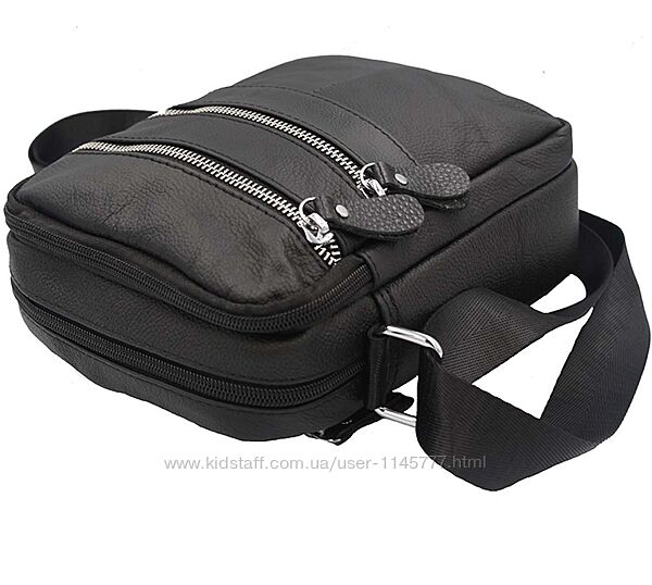 Сумка через плечо мужская кожаная черная, размер 22х16х8см, металлические молнииДва основных отделения на молнии. На фасаде 2 отделения на змейке. На обратной стороне отделение на молнии. Регулируемый ремень на плечо 64-135см.