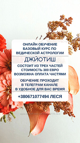 Сейчас проходит набор на базовый курс по Джйотиш астрологии - обучение в Телеграм канале, в свободное для вас время. Курс состоит из 3 частей 300 евро. Возможна оплата частями.