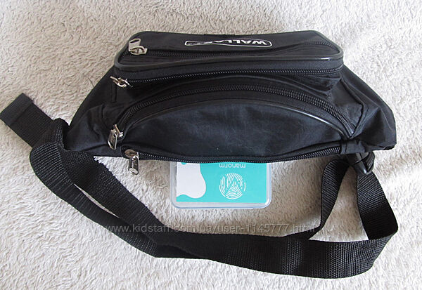 Вместительное основное отделение на молнии. На фасаде карман на змейке для мобильного размер 14х10см и отделение на молнии. На обратной стороне отделение на змейке для документов. Регулируемый ремень на пояс. Максимальный обхват талии 130см.