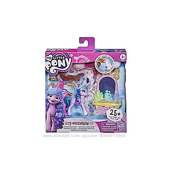 ОРИГИНАЛ!!! Скидки и Торг не предусмотрен!!!Познакомьтесь с Иззи Мунбоу: единорогом из леса Бридлвуд. Иззи — оптимистка, которая любит мастерить, творить и сверкать. Создавайте приключения с помощью Story Scenes Critter Creation Izzy Moonbow. Игровой набор включает шарнирную фигурку фиолетовой пони Иззи Мунбоу с формованными синими волосами. На фигурке есть сердечко, вдохновленное персонажем, знаком отличия. Поставляется с более чем 25 предметами, в том числе забавными аксессуарами для детей, которые можно настроить самостоятельно. Используйте 2 прилагаемых листа с наклейками, чтобы наклеить глаза, уши и другие украшения на 4 помпона. Украсьте разноцветные помпоны пушистыми питомцами. Наклей наклейки на помпоны, чтобы превратить их в пушистых лесных зверей. Поместите косметику на туалетный столик и храните кристаллы в сундуке с сокровищами, используя прилагаемую сюжетную сцену в качестве фона.