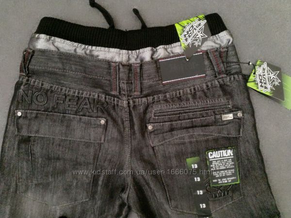 Джинсы бойфренды No Fear, рост 158-164 см. "Без страха", так буквально переводится название молодежной торговой марки. Очень стильный пошив, красивая комбинация тканей, качественная брендированная фурнитура, сзади выдавлен логотип бренда. Длина 96 см, внутр шов штанины 72 см, пояс от 34 до 43 см, бедра 54 см, посадка впереди 28 см, сзади 37 см, штанина внизу 17 см.Новые с бирками!
