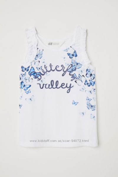H&M Маечки с рюшами и принтом бабочки для 4-6 лет в наличии