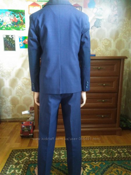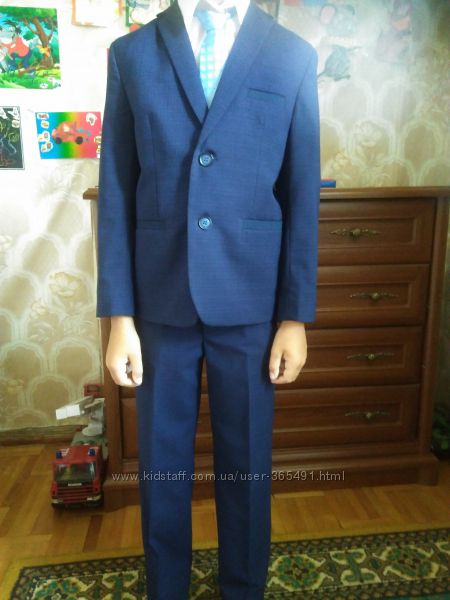 ПродамКостюм для школы на р.128см, Львовской фабрики, 70% шерсть,30% акрил состояние Нового, одевали несколько раз (было много всего поэтому костюм не носили) замеры - штаны: длина-76см + есть запас чтоб отвернуть, талия-30см+ есть утяжка; пиджак: длина-51см, рукав от плеча-45см, с заплатами на рукавах, на худенького ребенка в подарок галстук, цвет синий в чуть заметную полоску, очень красивый и стильный костюм смотрится Супер! Цена - 420 ГРН.