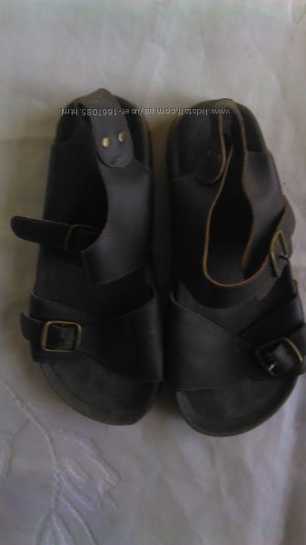 Шлепанцы Petits Petons р.36, натуральная кожа, коричневый цвет, застегиваются на ремешок с металлической пряжкой, в районе пальцев такая же застежка, удобно регулирует объем.Длина стельки 23,5 см, ширина стельки 8 см.