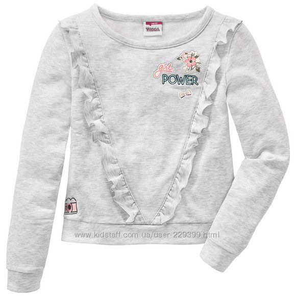 Модный,стильный свитшот 2в1 немецого бренда ErnstingsFamily подростковой серии Yigga р.134/140 свитшот внутри двунитка,укршан модными нашивками.Отличное качество.