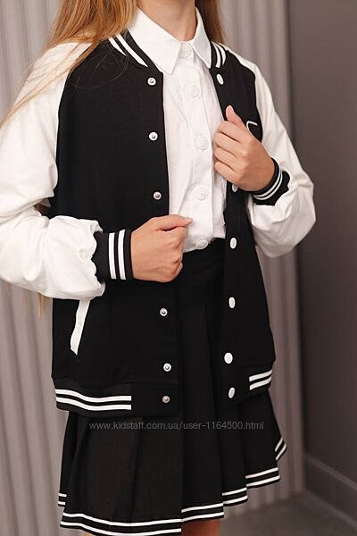 Подробное описание: Стильний бомбер для дівчинки Розмір 146, 152, 158, 164 чорний з білим