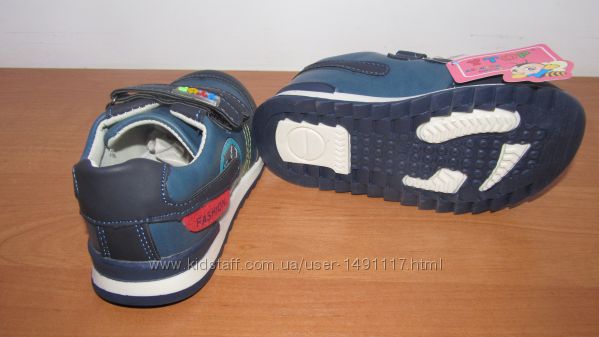 Распродажа!Новые недорогие кроссовки-туфельки для мальчика. Синего цвета. Стильные. На липучках. Стелька кожаная+супинатор. На ножке смотрятся красиво.размеры в наличии: