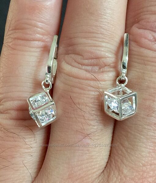 фото 6-10 серьги покрытые родием Вес: 7,90 гр. Вставка вес 4,20 гр. Длинна 29 мм. Кубик 10 на 10 мм. Цена 1275 грн.