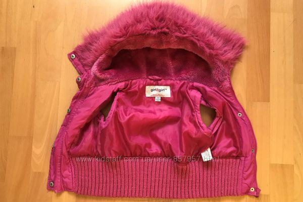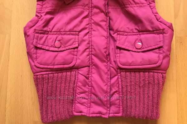 Яскрава тепла безрукавка "Girl2Girl" гарної якості у відмінному стані без нюансів. Розмір по бірці 5-6 років/116, можна вдягати як раніше так і пізніше залежно від дитини, краще орієнтуйтеся на заміри. Колір насичений малиновий.Довжина по спині від шиї - 37 см, ширина під руками - 37 см, ширина по низу резинки у нерозтягнутому вигляді - 29 см (тягнеться до 40 см).