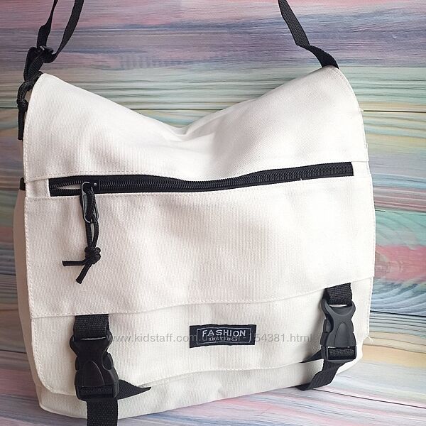 Сумка поштальонка, мессенджер молодіжна на плече біла Y2K