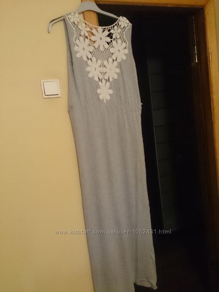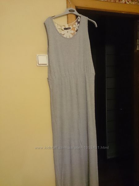 Брендовое платье Athmosphere 14 серое кружево длинное трикотаж