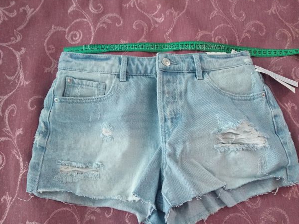 Замеры: полуобхват в поясе 37,5 см, в бедрах 51 см, высота шорт спереди 26 см, сзади 29 см, высота проймы спереди 24,5 см, сзади 34 см.