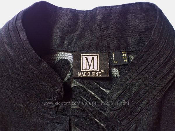 Необычно оригинальная блуза немецкого бренда Medeleine,История Немецкого fashion-бренда Madeleine , входящего в холдинг Tristyle Group, началась еще в 1977 году с первого каталога эксклюзивной женской одежды. Tristyle Group заработала себе имя в Германии на дистанционной (онлайн и каталоги) торговле одеждой, обувью и аксессуарами. Помимо Madeleine, в портфель брендов компании входит марка Peter Hahn (также занимается дистрибуцией немецких премиальных брендов). Головной офис расположен в Мюнхене. Замеры: Длина-67см.ПОГ-50см.