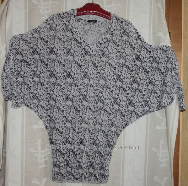 МОдель особенная- "летучая мышь" , поэтому и замеры особенные:)) Дл. рукава от ворота 73 из них 17 узкий манжет-которым можно регулировать длину рукава, высота выреза 14 см -это не глубоко, это как раз красиво) Там где мышь переходит к поясу 47, резинка плотная внизу 34, высота 18, Дл.из-я 97. Драпируется и тянется так, что можно носить как блузу-высоко или как платье, оттягивая вниз.