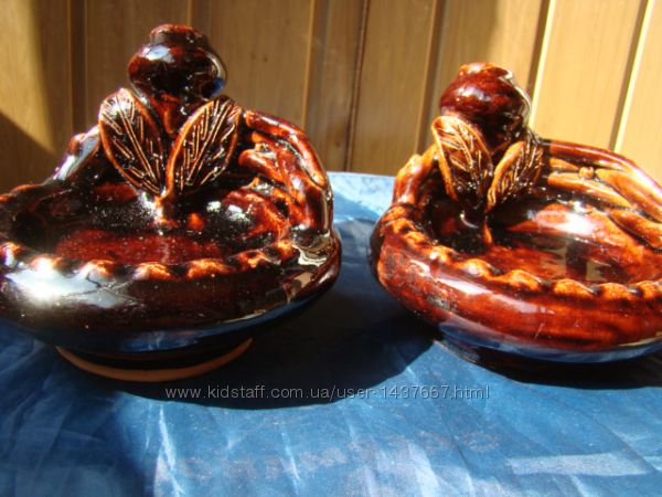 Предлагаются две оригинальных керамических пепельницы.Благодаря своей оригинальности и дизайну помогут украсить Ваш интерьер.Диаметр -- 13 см. Высота -- 6 см.
