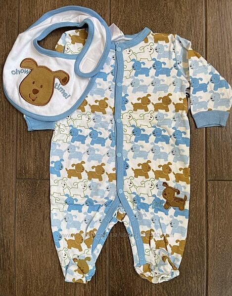Набор хлопковый человечек слип с собачками и слюнявчик Размер 6-9 мес Мon cheri baby