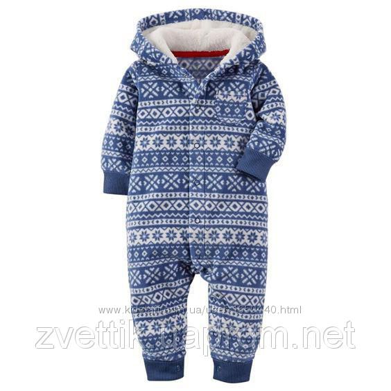 Слип комбенизон пижамка микрофлисовый с капюшоном Размер 9мес Картерс Carters